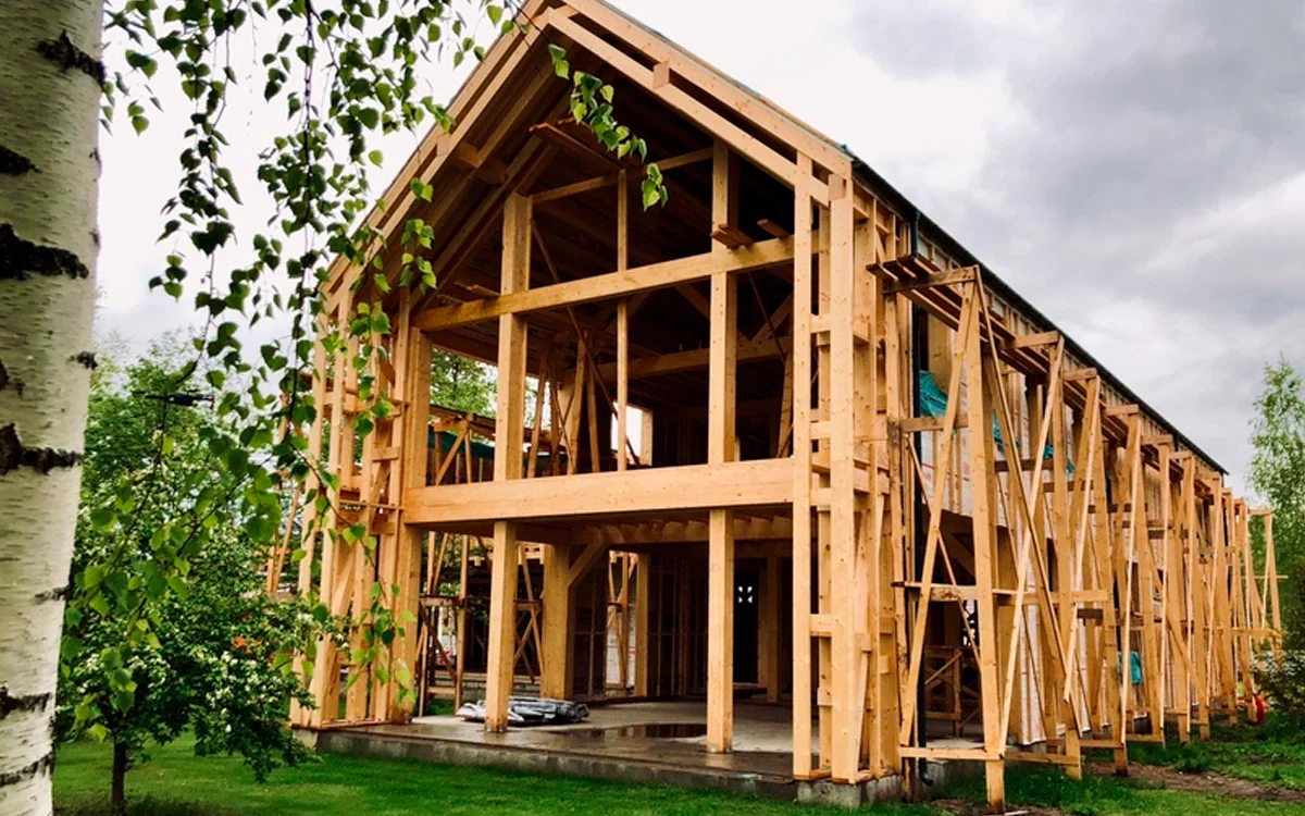 Во-вторых, прочность конструкции и двухскатной крыши обеспечивают при помощи вертикальных балок. Здесь важно соблюсти баланс, потому что множество вертикальных балок может «перегородить» внутреннее пространство дома.