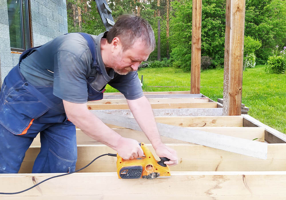 Это только кажется, что все доски одинаковые: во-первых, ленточная пила в процессе работы слегка "вихляет" и потому размеры "плавают", а во-вторых, в процессе "усушки и утруски" доски неминуемо изгибаются, превращаясь в "сабли" и "вертолёты". А значит, даже уложенные на ровную поверхность, их верхние края неминуемо гуляют, образуя холмы и ямы.