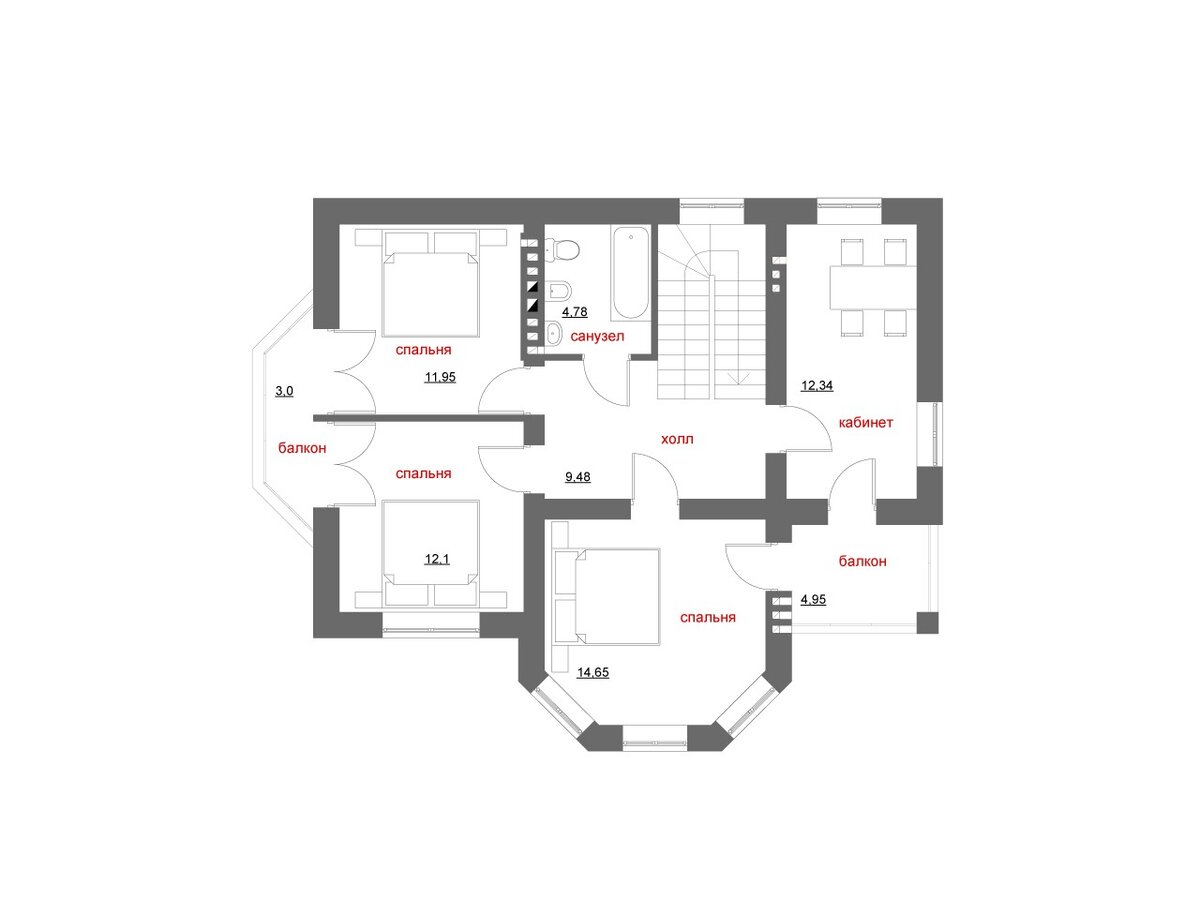 Здесь расположились уютная гостиная с камином, создающим удивительную атмосферу, способствующую расслаблению и абстрагированию от суеты, большая кухня, санузел и гардероб.На втором этаже расположились три спальни, кабинет и санузел.
