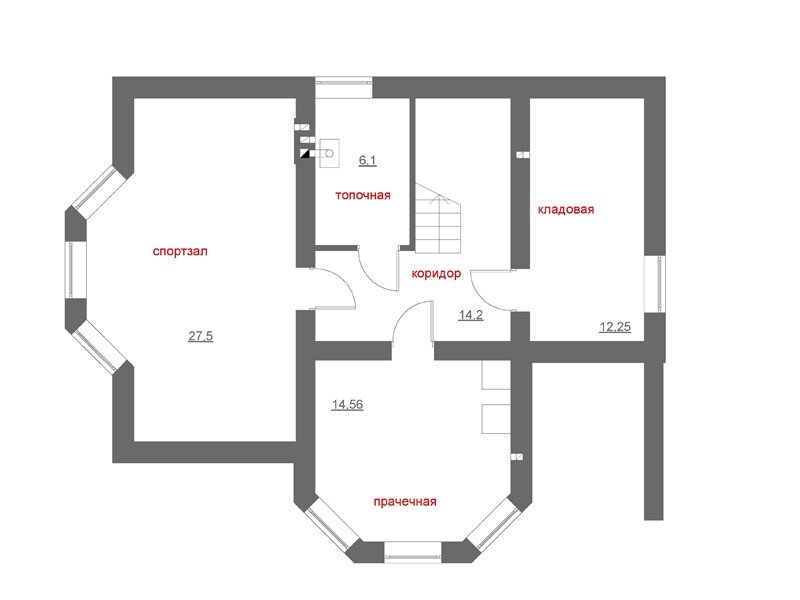 Цокольный этаж вместил просторный тренажерный зал, прачечную, кладовую и топочную.