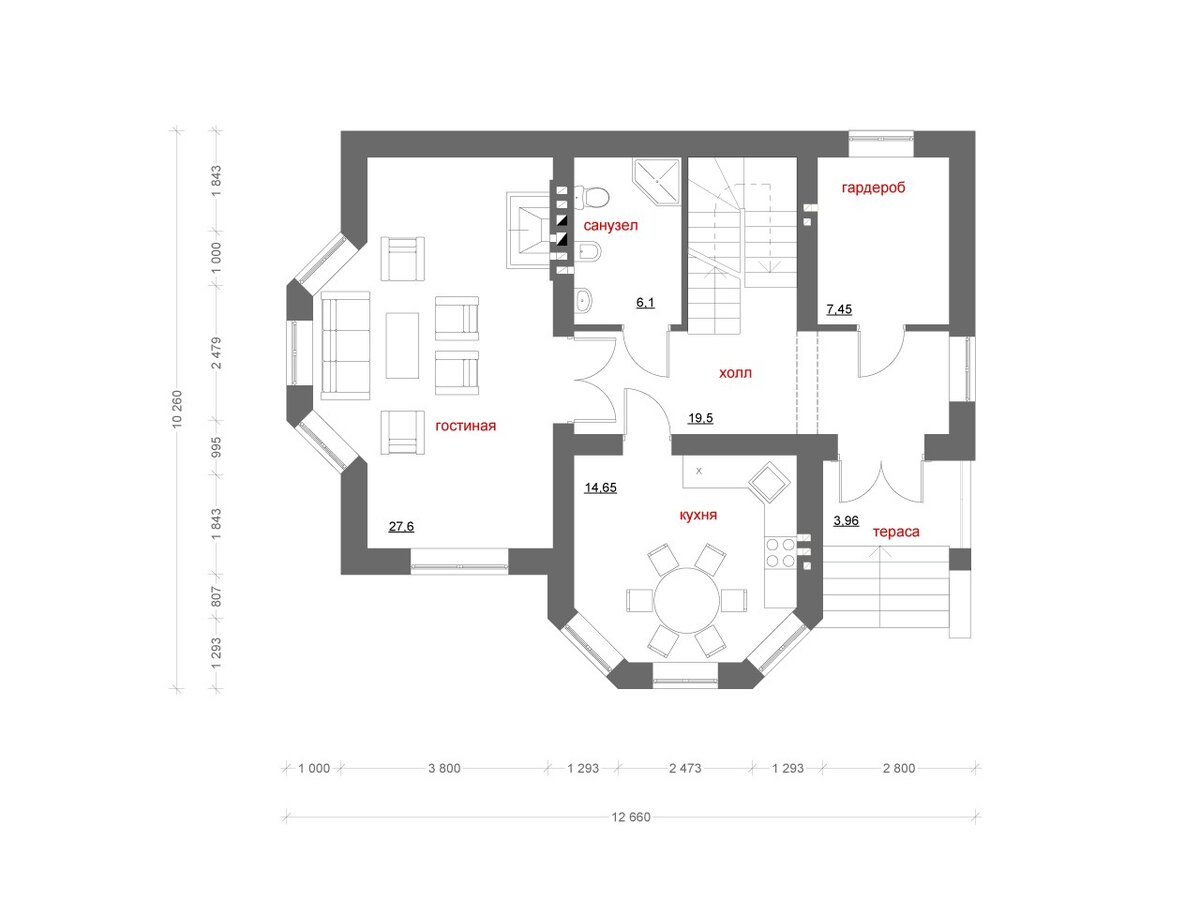 Первый этаж – зона совместного отдыха, встреч с друзьями и родственниками.