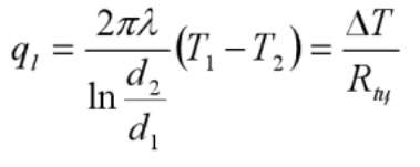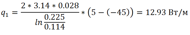 Тепловые потери с одного метра трубы определяются по формуле Фурье, приведенной в учебнике «Проектирование и эксплуатация систем электрического обогрева в нефтегазовой отрасли.